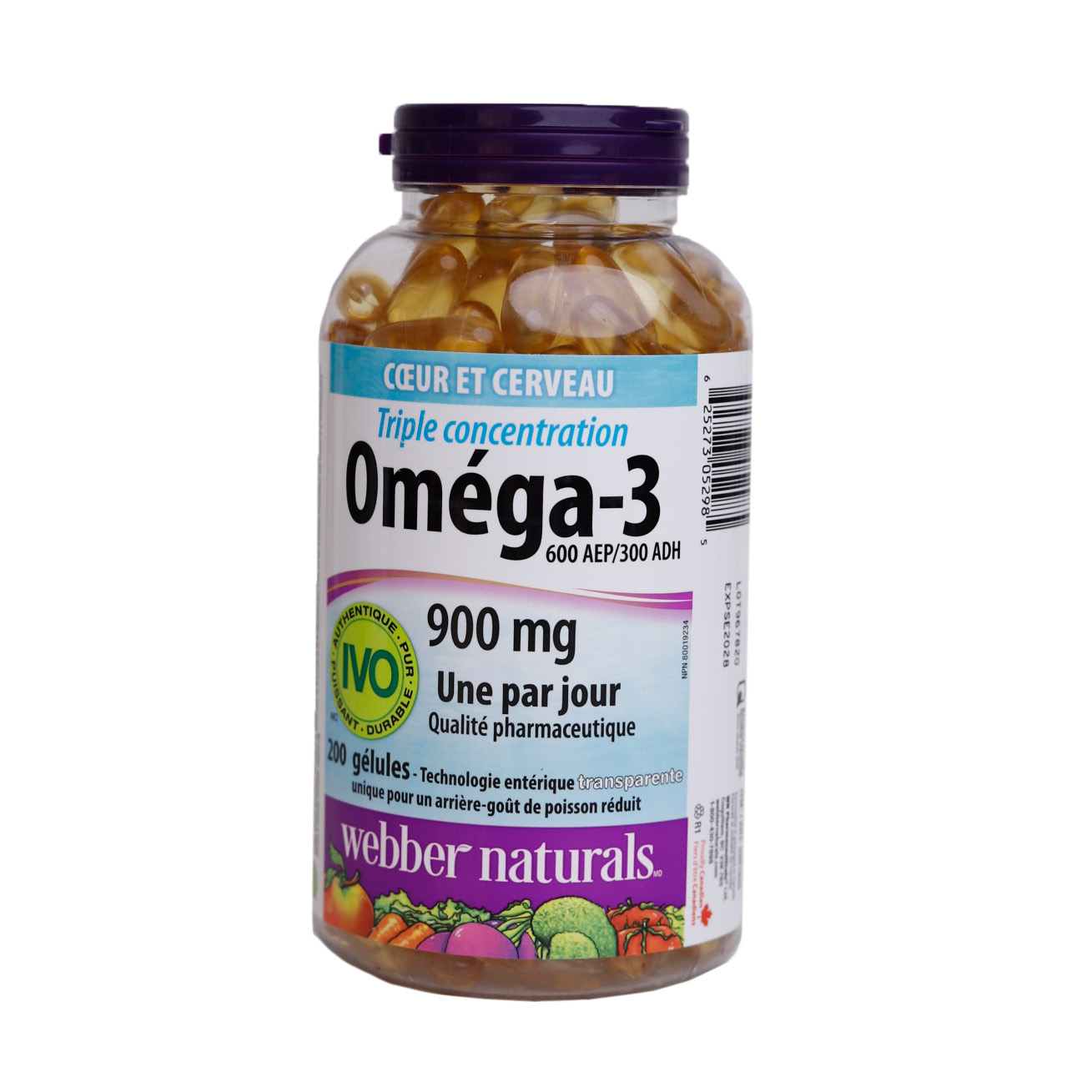 کمک به حمایت از سلامت قلب و عروق و عملکرد مغز، کاهش تری گلیسیرید و التهاب سرم و ارتقاء تعادل خلق و خوی سالم با امگا 3 با قدرت سه گانه. امگا 3 از Webber Naturals از روغن ماهی وحشی ساخته شده است.