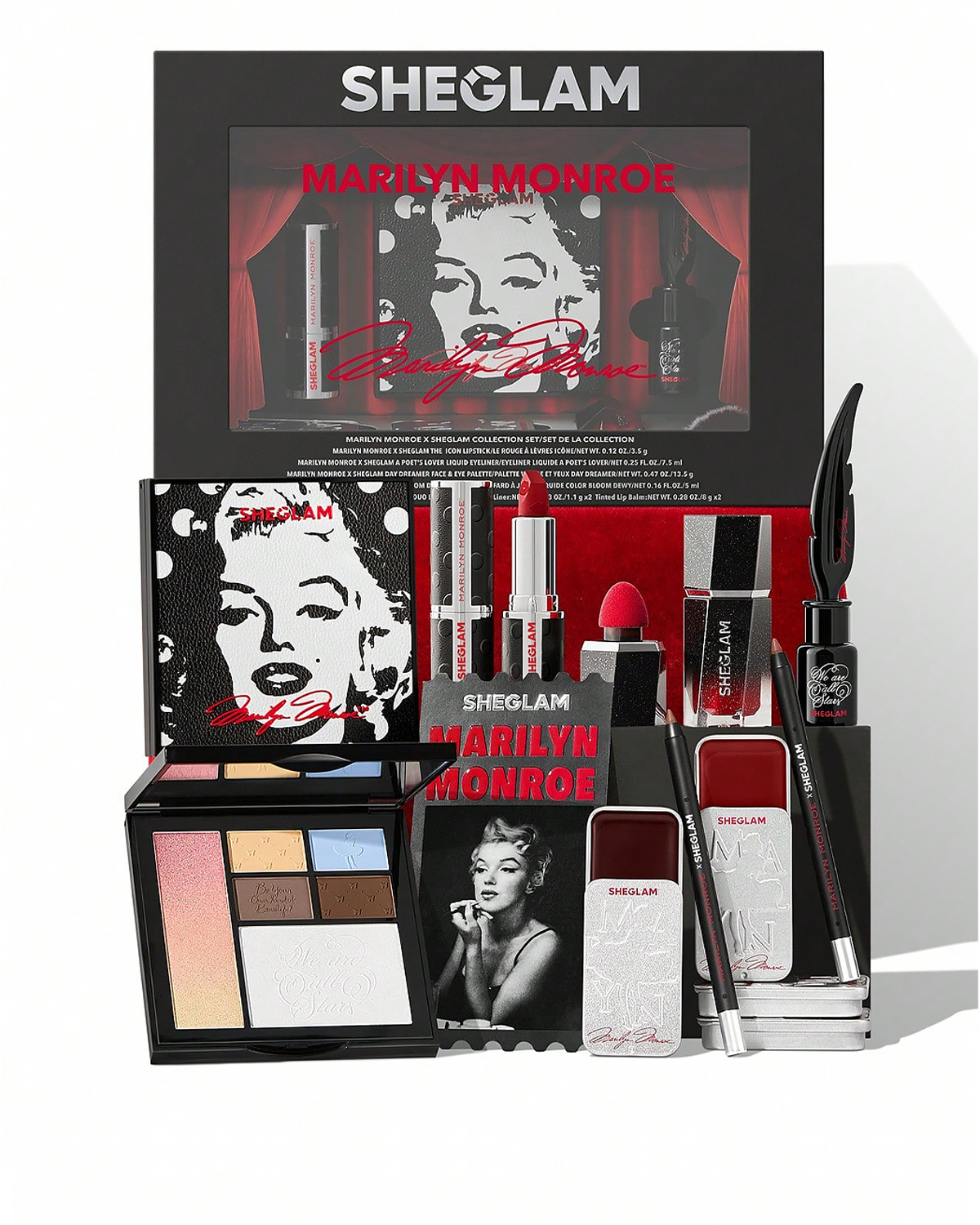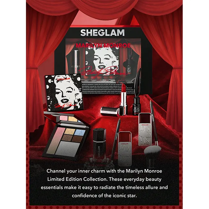 پک آرایشی مرلین مونرو شیگلم، ادای احترامی به این ستاره افسانهای است. مجموعهای بینظیر از محصولات آرایشی باکیفیت که به شما کمک میکند تا با آفرینش آرایشی کلاسیک ظاهری فریبنده و جذاب مانند مرلین مونرو داشته باشید.