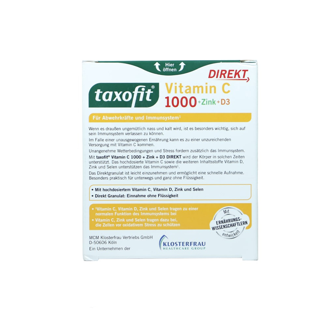 ساشه ویتامین سی و د3 و زینک تاکسوفیت حاوی ترکیبی از ویتامین‌ها و مواد معدنی ضروری برای تقویت سیستم ایمنی است. این ترکیبات عبارتند از: