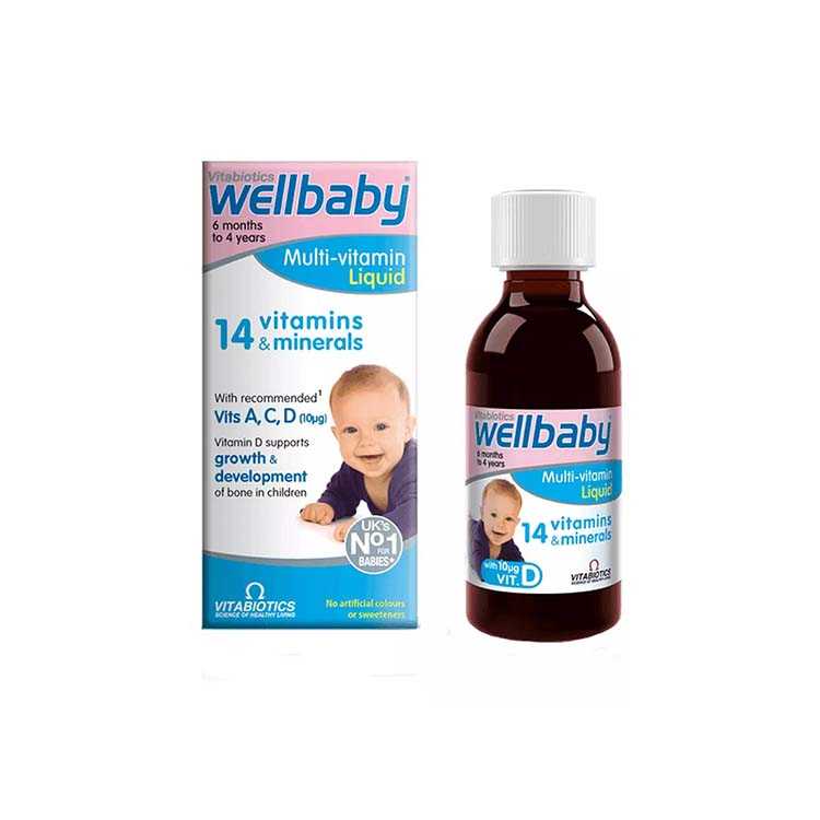 شربت مولتی ویتامین کودکان ول بیبی ویتابیوتیکس ساخت کشور انگلستان است و حجم آن 150 میلی لیتر می باشد. در صورتی که به دنبال خرید شربت مولتی ویتامین برای کودکان از 6 ماهگی تا 4 سالگی به منظور تقویت و کمک به رشد و نمو در حیاتی ترین سال ها هستید، بدون شک این محصول یکی از بهترین گزینه ها برای شماست.